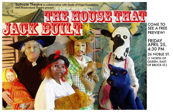 Suitcase Theatre’s target audience is emotionally vulnerable children and older adults who live on the margins of society or in long-term care facilities. Our inaugural show, The House That Jack Built, based on the nursery rhyme, was received with much acclaim by each of the audiences that we performed for: intellectually disabled adults, multi-exceptionality high school students, culturally-isolated elementary pupils and institutionalized seniors.