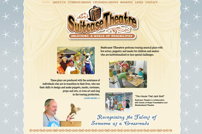 Suitcase Theatre is a new musical theatre company that has a two-fold purpose: to entertain disadvantaged children and institutionalized seniors while also helping to rejuvenate the creative talents of adults who are at a crossroads in their lives.