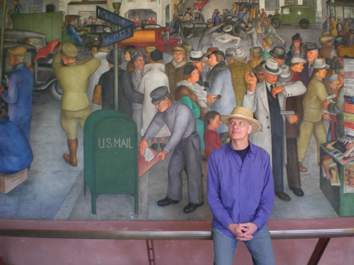 "City Life" (1933) by Victor Arnautoff, one of several murals at the Coit Tower, San Francisco, with man.