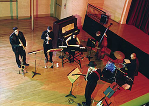 Sextet à Tête in rehearsal. Jeff King, Steve Crowe, Tania Gill,
